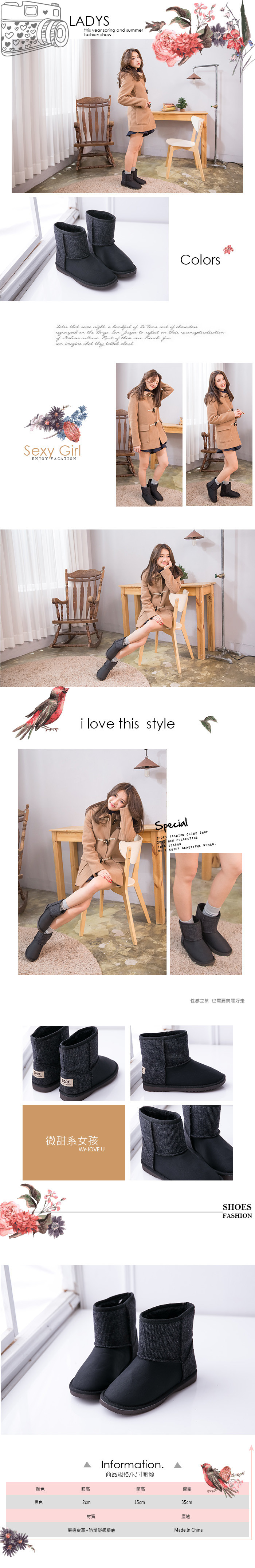 【88%】經典款素色優雅短毛呢皮革短靴 雪靴 防滑膠底雪靴  2色